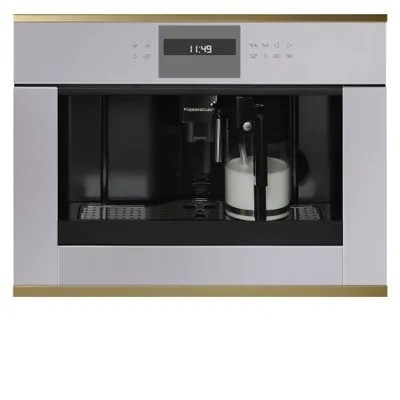 Встраиваемая кофемашина Kuppersbusch CKV 6550.0ЖК-дисплей с текстовым и графическим полями Электронная система управления с сенсорными кнопками Программируемое количество кофе для 5 размеров чашек (эспрессо, малая, средняя, большая, высокая) Приготовление 1 или 2 чашек Функция подачи молока для приготовления капучино или латте Съемный контейнер для молока с функцией очистки Возможность использования кофейных зерен или молотого кофе Регулируемый по высоте раздатчик кофе Давление при заваривании ? 15 бар 3 температуры кофе на выбор Возможность выбора крепости кофе (5 предварительно заданных уровней) Отдельные нагреватели для заваривания кофе и приготовления горячей воды Программа удаления накипи Автоматическое ополаскивание при включении и отключении Емкость для воды заполняется спереди Электронный таймер с белыми индикаторами Программируемое время включения Режим ожидания Телескопические направляющие для легкого заполнения кофемашиныПодсветка чашек:Наблюдение доставляет удовольствие - хорошо известный факт. Светодиодная подсветка преподносит только что сваренный кофе в правильном свете. И приготовление кофе становится хорошей традициейЕмкость для свежей воды:Духовые шкафы и кофемашины Kuppersbusch легко встраиваются в любую кухонную мебель, так как благодаря наличию емкости для свежей воды подсоединение к водопроводу не требуютсяХарактеристики:Потребляемая мощность: 1,35 кВт (вилка Schuko)Размеры прибора (Ш x В x Г): 595 x 455 x 475 мм (вкл. фасад 20 мм и телескопические направляющие) Размеры ниши (Ш x В x Г): 560 x 450 x 550 мм"